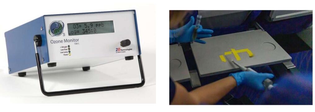 2B Tech 儀器的作用:106-L 型在整個飛機消毒過程中監(jiān)測臭氧濃度。