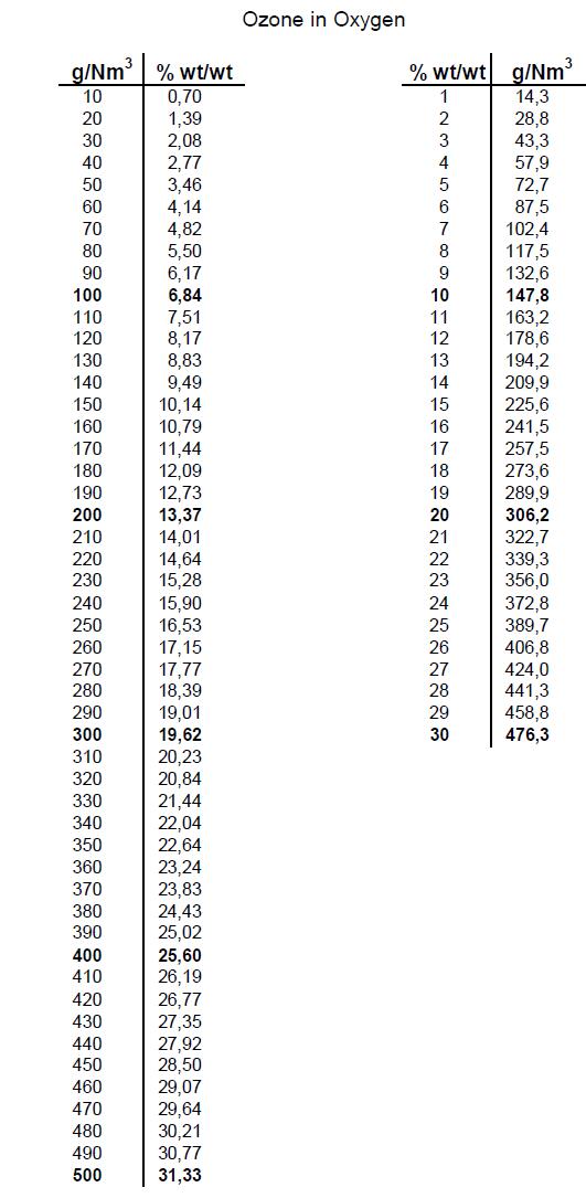 1、質量濃度表示法:每立方米空氣中所含臭氧的質量數,即g/m3,還有mg/L、wt%
