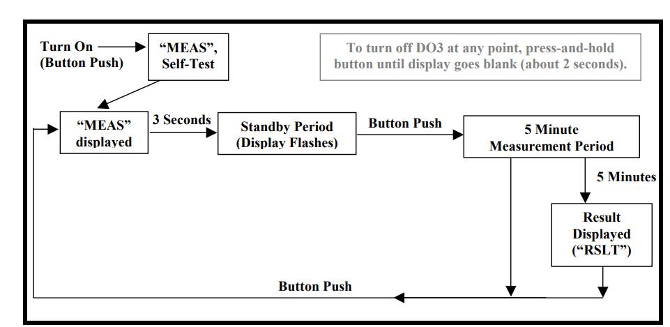 a)按下并釋放DO3的按鈕。顯示器將簡短地讀取“STRT”,這表明5分鐘測量周期的開始。
