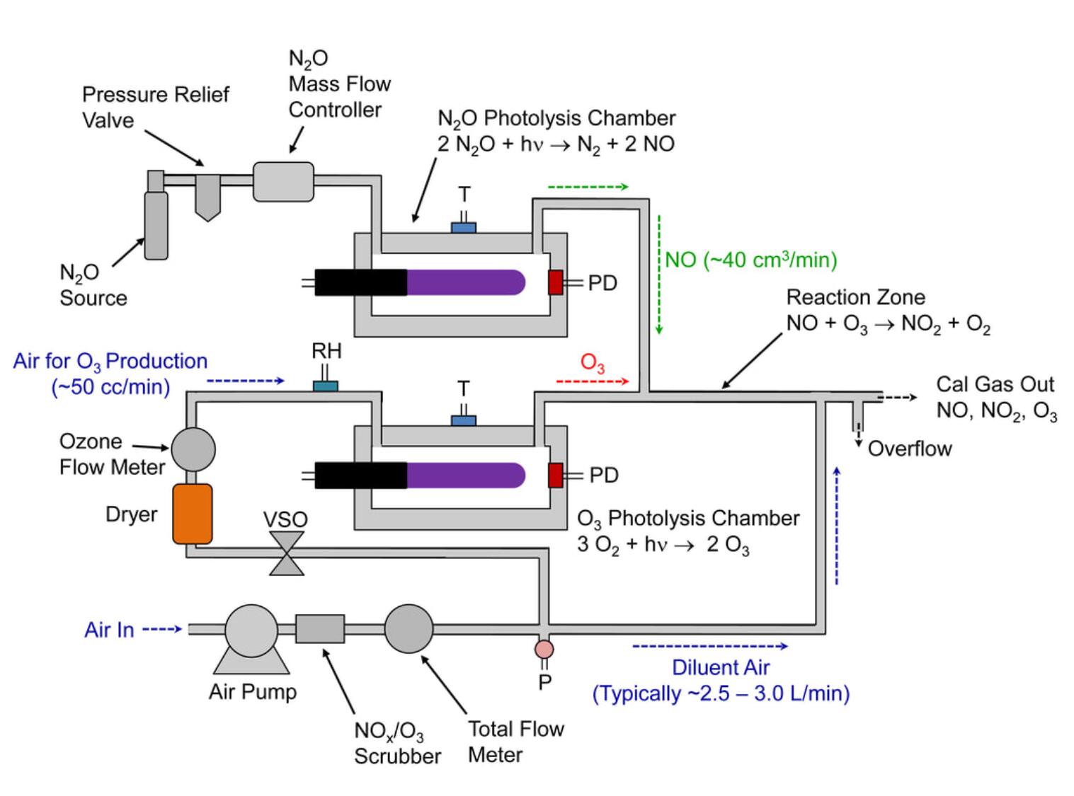 美國2B 714 型 NO2 /NO/臭氧校準(zhǔn)源?工作原理